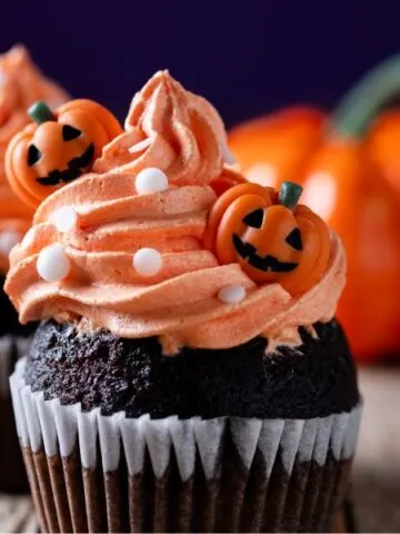 Αφράτο νηστίμο γλάσο πορτοκαλιού για Halloween cupcakes. Φτιαγμένο με φυσικό χυμό πορτοκαλιού, δίνει στα γλυκά έντονο χρώμα και υπέροχη γεύση, χωρίς βούτυρο ή γάλα.