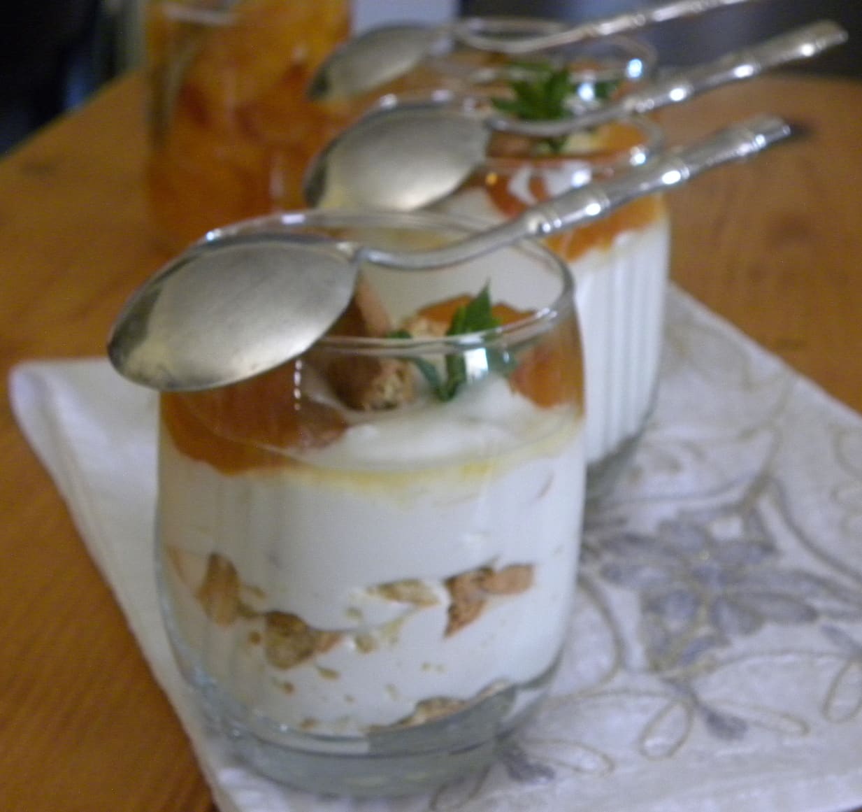 Συνταγές υπάρχουν πολλές και εγώ έχω κάνει πάρα πολλές παραλλαγές γιατί είναι ότι πρέπει για ένα εύκολο, δροσιστικό γλυκό και εάν αγαπάτε να φτιάχνετε κομπόστες ή γλυκά του κουταλιού, είναι ένα ωραίος τρόπος να τα συνδυάσετε.