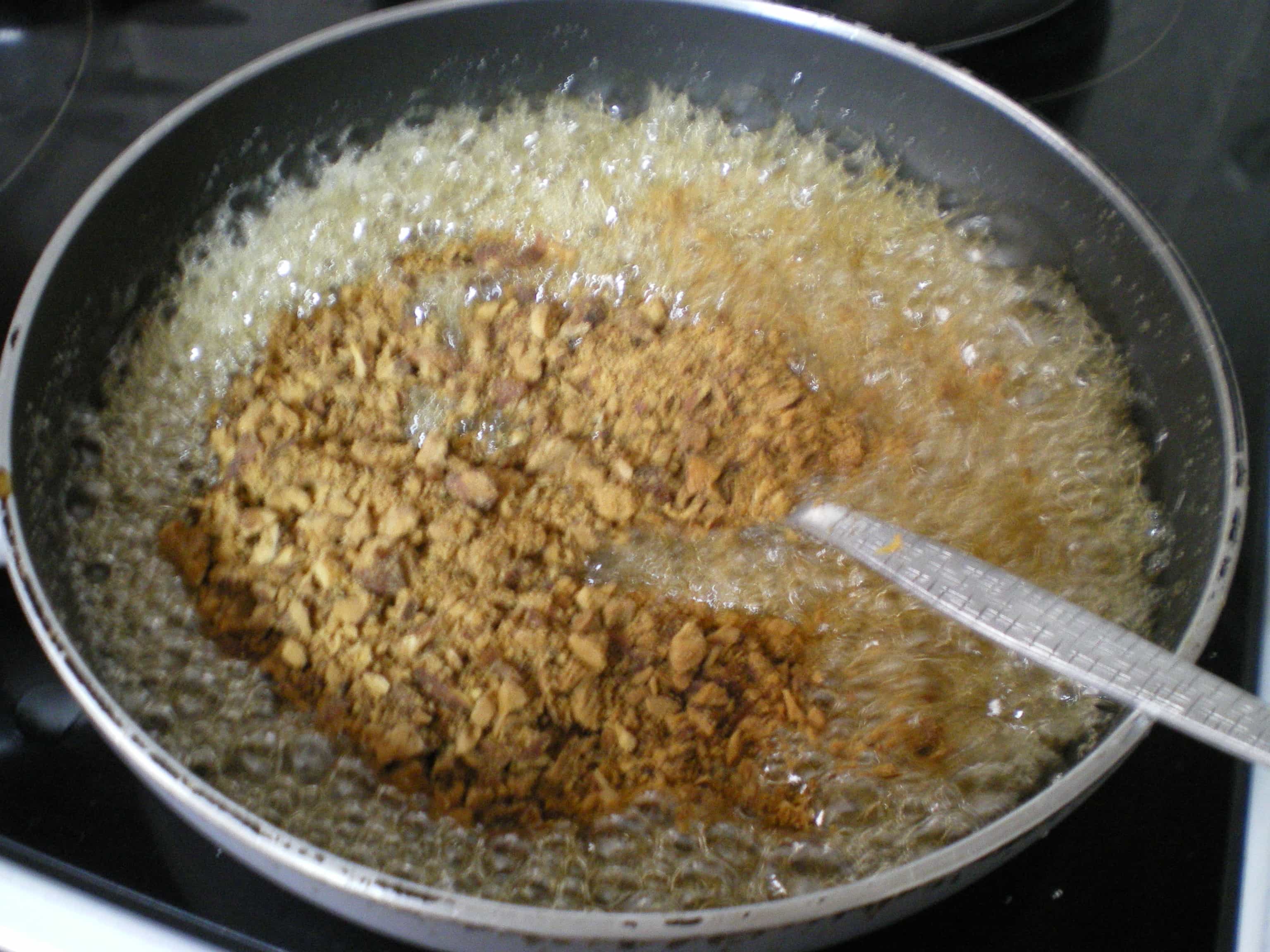 Ανακατεύουμε συνεχώς μέχρι να πάρει ένα καστανό χρώμα η ζάχαρη.