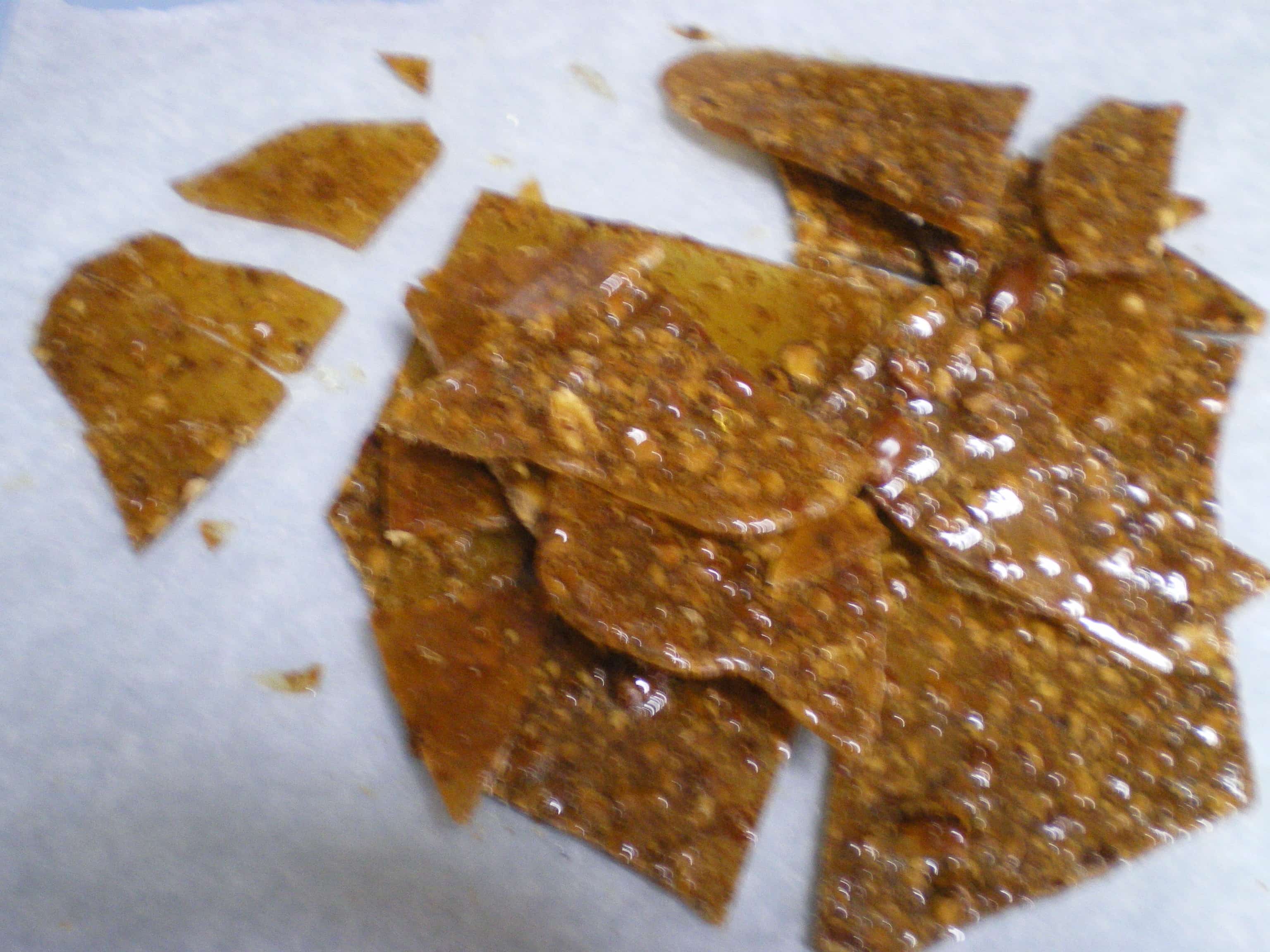 Όταν κρυώσουν καλά τα σπάζουμε σε μικρά-μικρά κομματάκια.