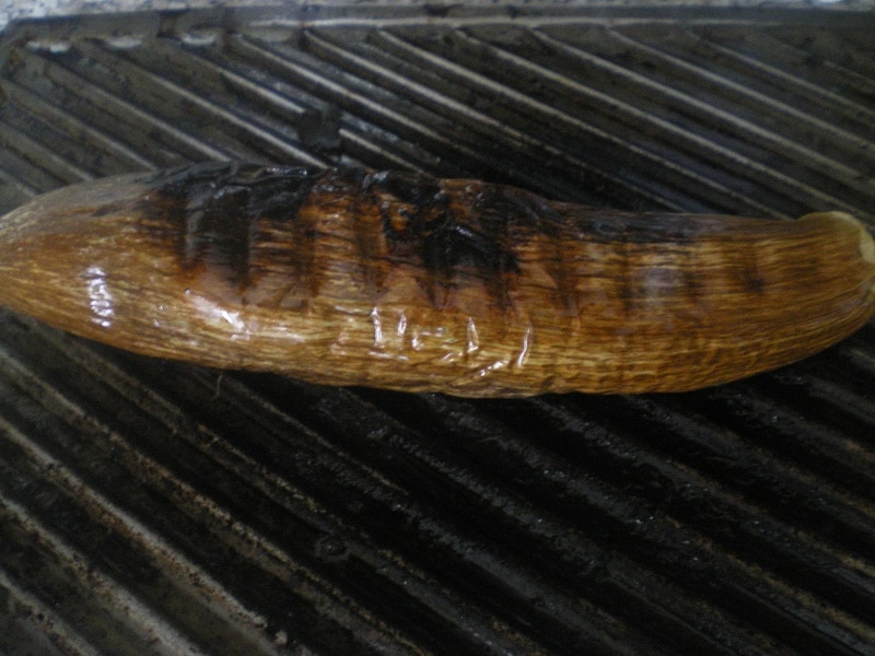 - Ψήνουμε τις μελιτζάνες σε φλόγα γύρω στα 15 λεπτά μέχρι να μαυρίσουν απ’ έξω.