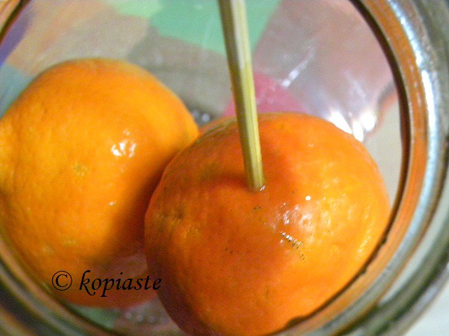 Με τον ίδιο τρόπο, μπορείτε να φτιάξετε λικέρ με οποιαδήποτε εσπεριδοειδή θέλετε, αλλά τα μικρότερα όπως τα μανταρίνια ή τα κουμκουάτ τα βάζουμε ολόκληρα μέσα στο αλκοόλ, αφού πρώτα τα τρυπήσουμε.