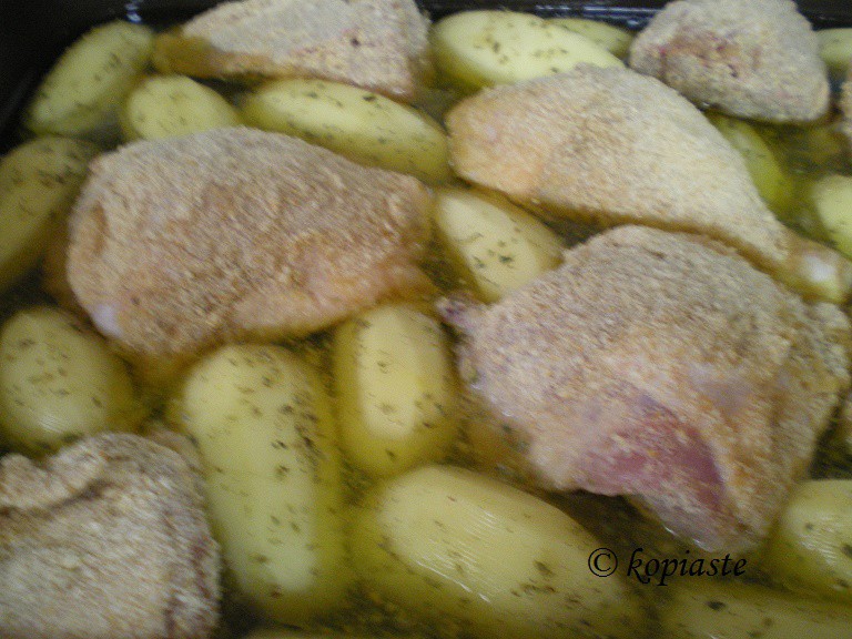 Κοτόπουλο Πανέ στο Φούρνο με Πατάτες