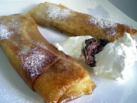 Μπανάνες τηγανιτές τυλιχτές σε φύλλο