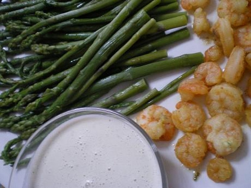 Ρεβiθοκεφτέδες με γαρίδες, σπαράγγια και ντρέσσινγκ από ταχίνι, φαγητά εναντίον του καρκίνου: