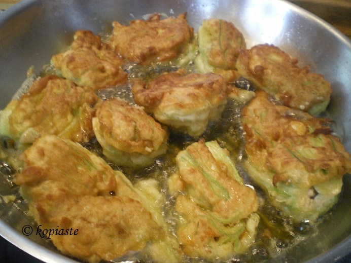 Τα λουλούδια από τα κολοκύθια δεν διατηρούνται για πολύ φρέσκα, γι’ αυτό μόλις γύρισα σπίτι είπα να τα αξιοποιήσω και έτσι ξεκίνησα αμέσως την ετοιμασία τους.
