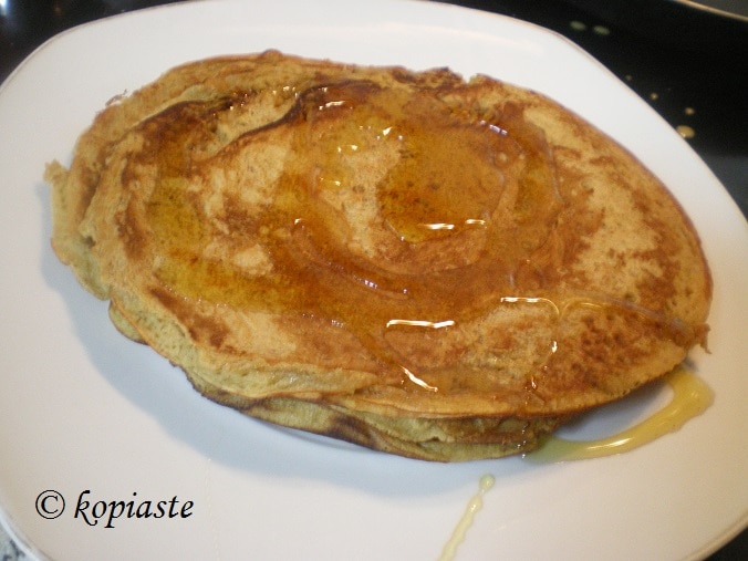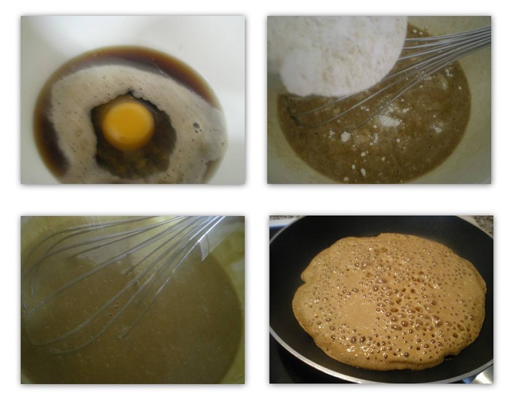 Περίσσεψε λίγη μπύρα και για να μην πάει χαμένη, έφτιαξα ένα ασυνήθιστο χυλό. Αρχικά σκεφτόμουν να τον κάνω λίγο πιο πηκτό και να βουτήξω φρούτα μέσα και να τα τηγανίσω αλλά άλλαξα γνώμη και έφτιαξα λίγες ασυνήθιστες τηγανίτες (πάνκεϊκς) ή κρέπες. Πρόσθεσα αλεύρι, λίγη ζάχαρη μαύρη και μέλι και 1 αυγό μόνο (γιατί ήταν το τελευταίο που είχα στο ψυγείο) και έφτιαξα κάτι πιο υγιεινό λιγότερο παχυντικό. Δεν είχα ξαναφτιάξει κρέπες με μπύρα αλλά έγιναν αρκετά καλές. Η ζύμη ήταν αρκετά αφράτη γιατί μόλις ο χυλός έπεσε στο ζεστό τηγάνι, η μπύρα αντέδρασε με μικρές φουσκάλες, που τις έκανε αρκετά αφράτες.