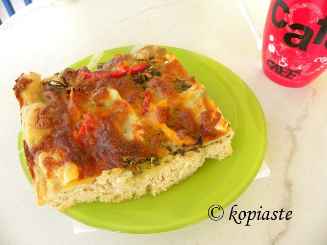 Ήμουν πολύ περίεργη να δοκιμάσουμε μια αυθεντική Ιταλική πίτσα όταν ήμασταν στη Ρώμη, αλλά οφείλω να πω ότι απογοητεύτηκα. Δυστυχώς δεν είχαμε την πολυτέλεια του χρόνου για να δοκιμάσουμε τα πάντα, όπως θα θέλαμε, αλλά μετά το περπάτημα για ώρες και ώρες κάθε μέρα, όταν έφτανε μεσημέρι και ήμασταν κουρασμένοι από το περπάτημα, σταματούσαμε όπου βρίσκαμε κάπου να κάτσουμε, να ξεκουραστούμε και να φάμε.