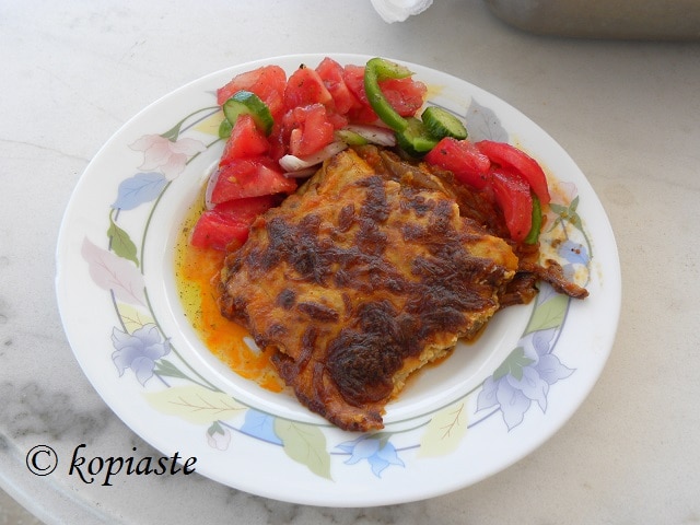 Ήταν πολύ νόστιμα, το μόνο μετανιώνω που χρησιμοποίησα μόνο 2 μελιτζάνες, γιατί τις έφτιαξα σαν μεζεδάκι γιατί εκείνη την ημέρα είχα ήδη φτιάξει Μπριάμ, είχα φτιάξει και ένα άλλο μεζεδάκι με φάβα που είχε περισσέψει και είχα και μαριναρισμένες σαρδέλες.