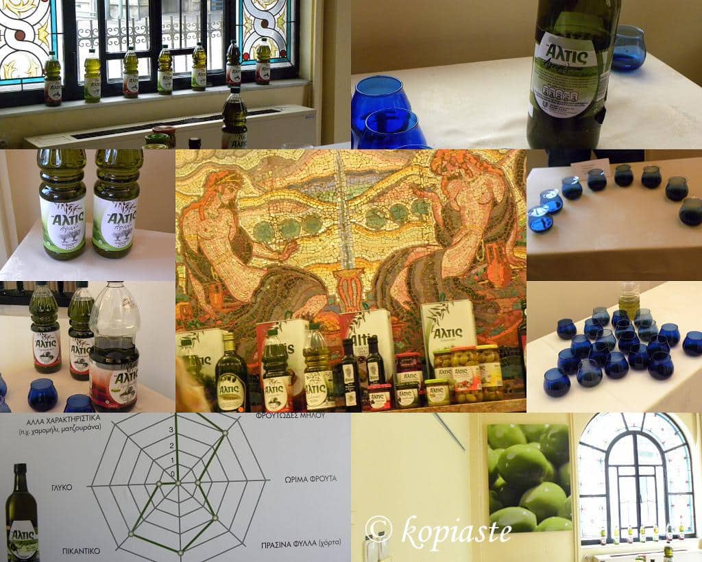 Μας μίλησαν για τη γευσιγνωσία ελαιολάδου και μετά περάσαμε και στη δοκιμασία των διάφορων ελαιολάδων ακόμη και των κακών ελαιολάδων για να αναγνωρίσουμε τις διάφορες γεύσεις. Στην πρώτη δοκιμασία υπήρχαν ελαιόλαδα με ελαττώματα όπως ατροχάδο, μούργα, ταγγό, μεταλλικό, μούργα, κρασώδες (ξινισμένο) κλπ. Μετά αφού καθαρίσαμε τον ουρανίσκο μας είτε με νερό, ψωμί ή μήλο δοκιμάσαμε και τα καλά ελαιόλαδα που έβγαζαν διάφορες γεύσεις και αρώματα, ανάλογα με την περιοχή που καλλιεργείται. Στο Ελληνικό ελαιόλαδο μπορούμε να ανιχνεύσουμε μωρδιές από γρασίδι, αμύγδαλο, λεμόνι, πορτοκάλι ή βότανα όπως χαμομήλι, βασιλικό ακόμη και σε ελαιώνες κοντά στη θάλασσα, αλάτι κ.λ.π.