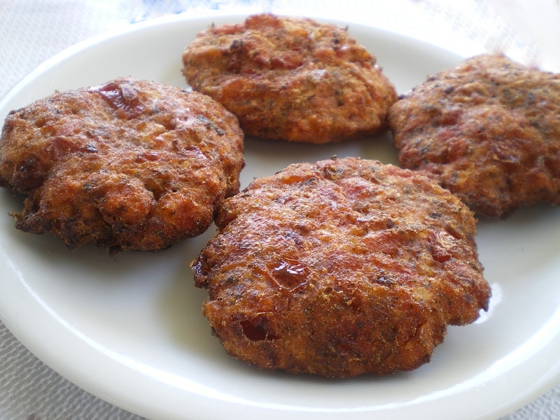 Αρχικά δεν υπήρχε ντομάτα στο φαγητό αυτό, αλλά μετά την ανακάλυψη της Αμερικής και την εισαγωγή της ντομάτας στην Ευρώπη, στην Ελλάδα καθιερώθηκε η προσθήκη ντομάτας στο φαγητό αυτό ενώ στην Κύπρο, έχει διατηρηθει η αρχική του μορφή και γίνεται μέχρι σήμερα, χωρίς ντομάτα.