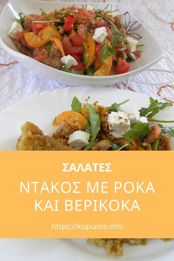 Η σαλάτα ντάκος Ρόκας με βερύκοκα, φέτα και βινεγκρέτ είναι μια δική μου παραλλαγή της παραδοσιακής Κρητικής σαλάτας με ντάκο.