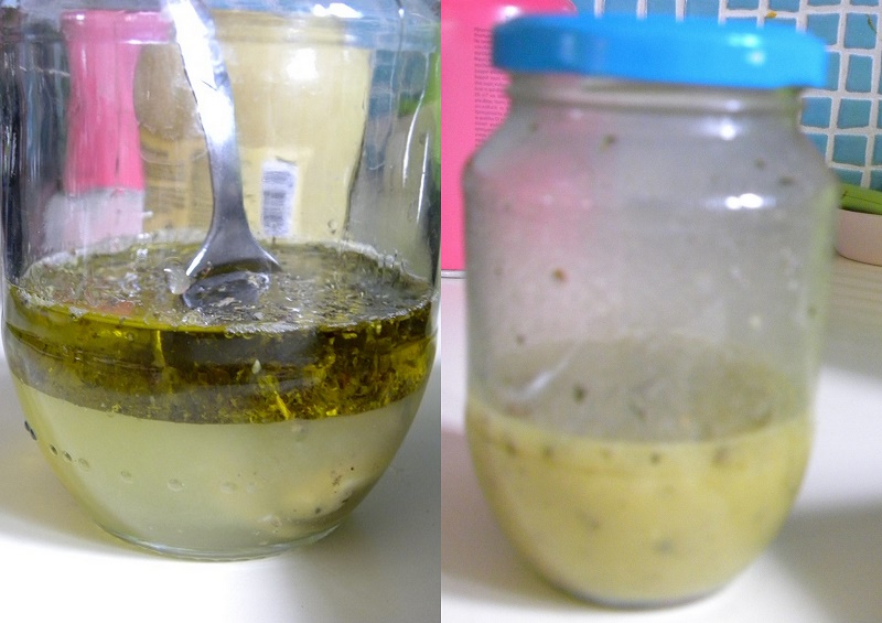 Στο λαδολέμονο έβαλα και μουστάρδα ντιζόν μέσα και αφού έβαλα όλα τα υλικά σε ένα βαζάκι και τα ανακάτεψα, έγινε μια υπέροχη σαλτσούλα. Εάν περισσέψει, το αφήνετε στο ψυγείο και το χρησιμοποιείτε σαν ντρέσσινγκ σε σαλάτες.