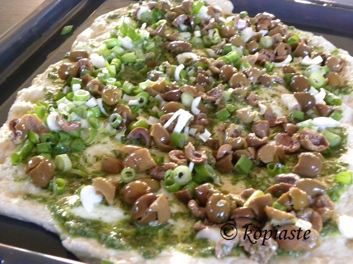 - Η ζύμη ετοιμάζεται και ανοίγεται ως πιο πάνω.