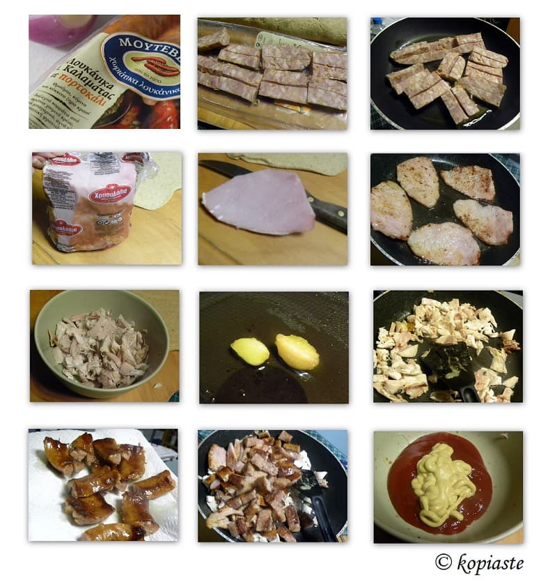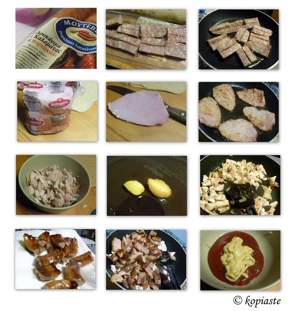 - 5 φέτες λούντζα (ή άλλο καπνιστό χοιρινό)
