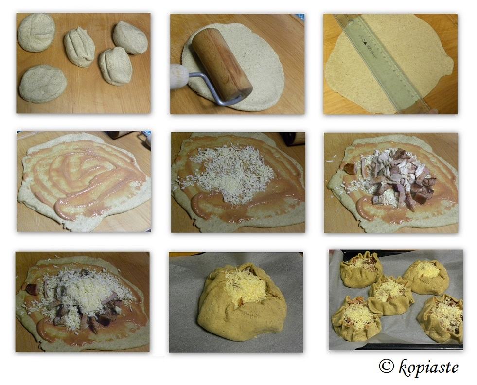 Όταν ξεκίνησα να φτιάχνω τη ζύμη, στο μυαλό μου σκεφτόμουν πως να χρησιμοποιήσω ένα τελευταίο λουκάνικο που είχε περισσέψει από προηγούμενη συνταγή. Σκέφτηκα να κάνω λουκανικοπιτάκια, αλλά δεν ήταν αρκετό το λουκάνικο, αλλά ούτε και πίτσα, αφού είχα φτιάξει μερικές ημέρες πριν. Άνοιξα λοιπόν το ψυγείο και εκτός από το λουκάνικο βρήκα λούντζα που έφερα από την Κύπρο, κοτόπουλο βραστό, που περίσσεψε από την προηγουμένη που είχα φτιάξει σούπα αυγολέμονο και στην κατάψυξη υπήρχαν τυριά τριμμένα που περίσσεψαν από την προηγούμενη πίτσα, κέτσαπ και μουστάρδα που πάντα υπάρχουν στο ψυγείο και έτσι αυτοσχεδίασα και έκανα αυτές τις υπέροχες ατομικές πιτούλες ή γκαλέτ, όπως αλλιώς λέγονται.