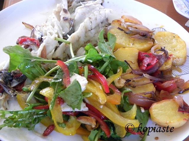 Fish milokopi shi drum and rocket and peppers salad