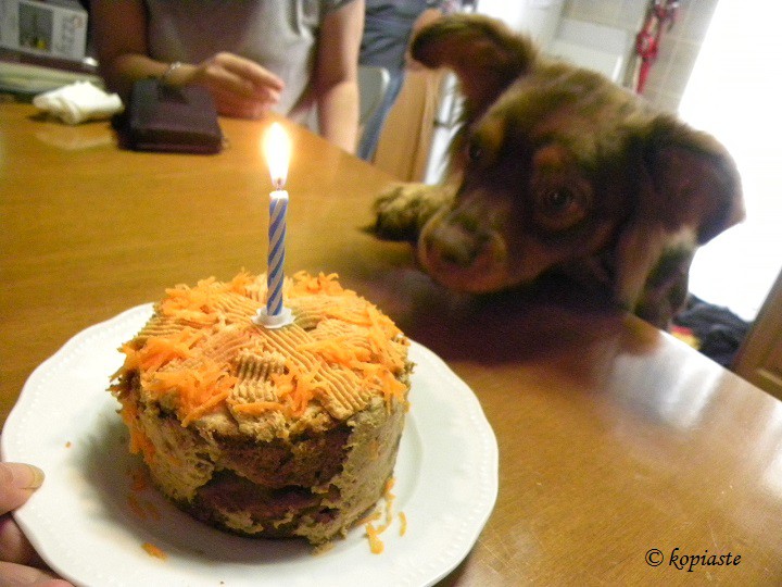 Ο Δίας μπορεί να εγγυηθεί ότι το κέικ ήταν νοστιμότατο γιατί άρχισε να το γλείφει πριν ακόμη ανάψουμε το κεράκι του και μετά το καταβρόχθησε με μεγάλη λαιμαργία, σε χρόνο ντετέ!