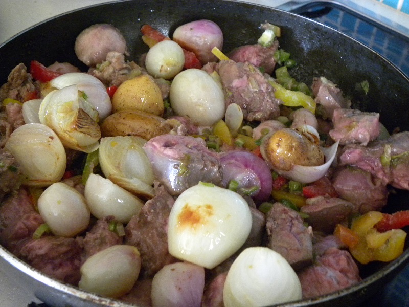 Μέχρι που βρήκαμε και τρεις πατατούλες, τις οποίες φύτεψε κάποια στιγμή ο άντρας μου και τί να τις έκανα τρεις πατατούλες, έτσι τις έβαλα και αυτές μέσα, ολόκληρες με τη φλούδα. Παρόλο που έγιναν πεντανόστιμες, γιατί ρούφηξαν όλη τη γλύκα του φαγητού, δεν θα τις ξαναέβαζα στη συνταγή αφού το σερβίρω είτε με λευκό ή καστανό Ρύζι Πιλάφι.