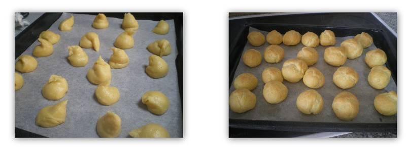- Με ένα κουτάλι ή χρησιμοποιώντας κορνέ (χωρίς μύτη) σχηματίζουμε το κάθε σου. Αφήνουμε μεταξύ του καθενός ένα κενό περίπου 3 εκατοστών γιατί θα φουσκώσουν.