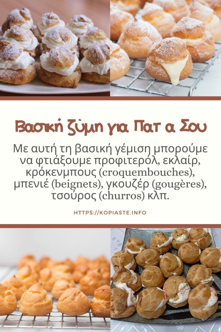 Η βασική ζύμη Πατ α Σου (Pâte à Choux στα Γαλλικά) είναι μια ελαφριά ζύμη της Γαλλικής κουζίνας που γίνεται με τέσσερα βασικά υλικά: Νερό, βούτυρο, αλεύρι και αυγά.