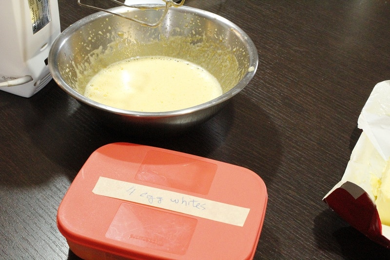 Τα ασπράδια εννοείται ότι δεν τα πετάμε. Τα κρατάμε στο ψυγείο για μερικές ημέρες ή στην κατάψυξη για μερικούς μήνες. Έτυχε να έχω και άλλα στην κατάψυξη και με αυτά που περίσσεψαν την επομένη έφτιαξα την τούρτα γενεθλίων του συζύγου μου.