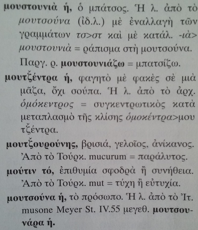 Πριν μερικούς μήνες, πήρα ένα ηλεκτρονικό μήνυμα (email) από μία Κυπρία αναγνώστρια του μπλογκ μου, που μένει στην Αδελαϊδα, της Αυστραλίας και που είναι γλωσσολόγος, σχετικά με την ετοιμολογία της Κυπριακής λέξης “μουτζέντρα”.