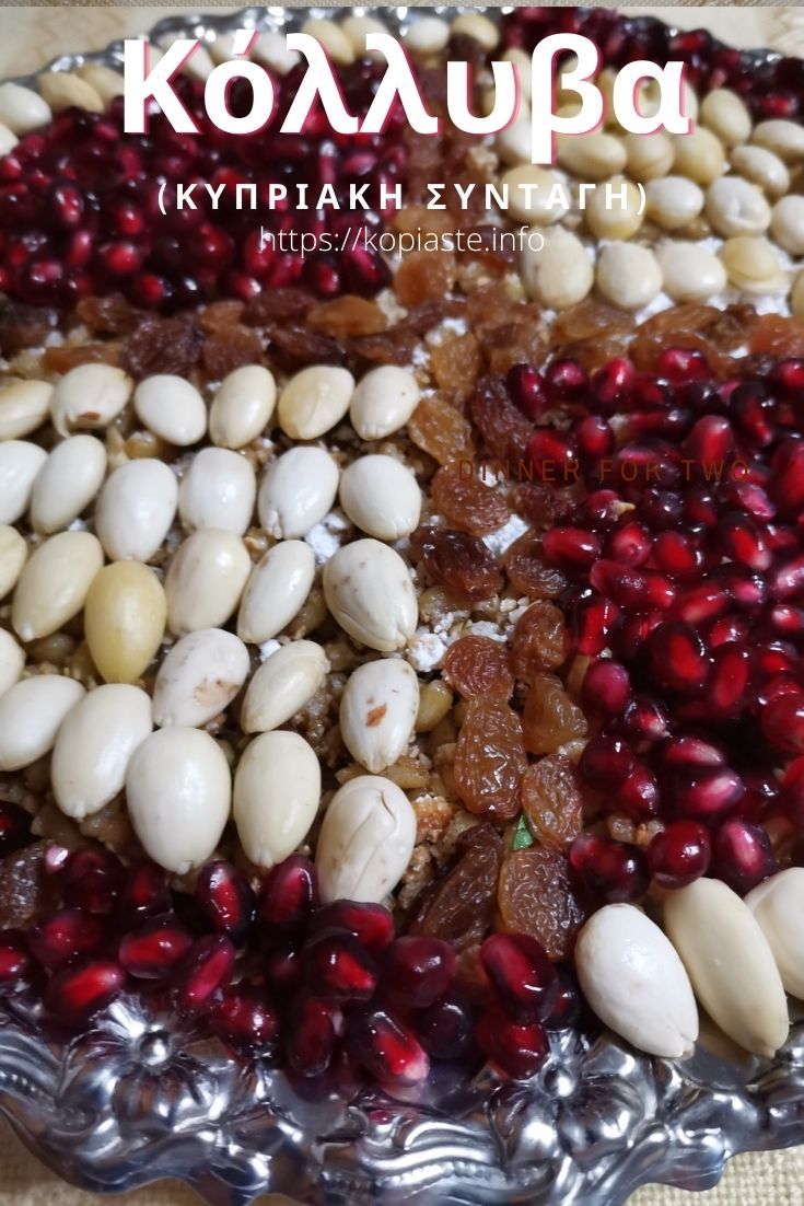Τα κόλλυβα είναι ένα γλύκισμα, που γίνεται με βρασμένο σιτάρι, ξηρούς καρπούς, σταφίδα, ρόδι σουσάμι και μπαχαρικά, που το πάμε στην εκκλησία για να μηνημονεύσουμε τους νεκρούς μας στις κηδείες ή στα μνημόσυνα.